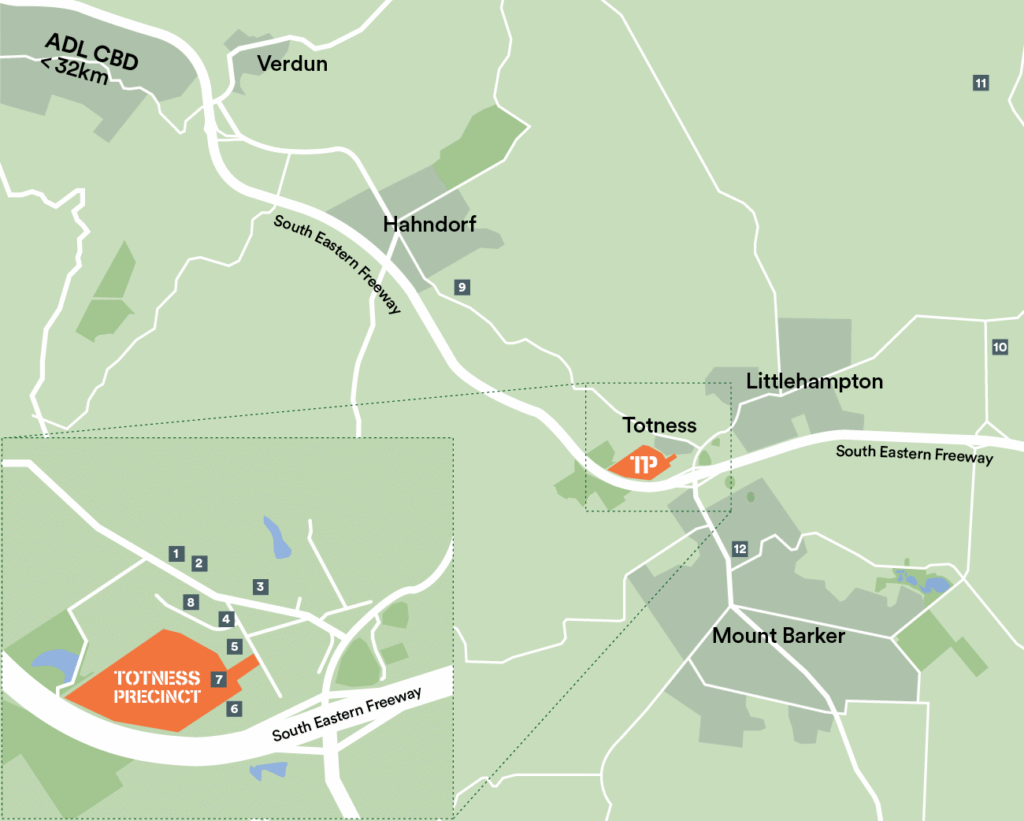 Just minutes from the heart of South Australia’s fastest growing regional city. Totness Precinct’s prime location offers quick and easy access to Mt Barker, Adelaide and major transport routes.